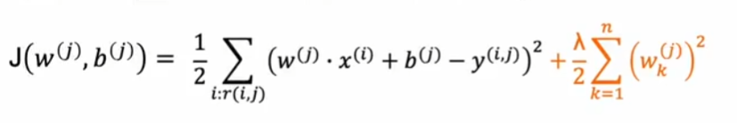 对于用户 j,对于电影 i 预测:$w^{(j)}\cdot x^{(i)}+b^{(j)}+\mu_i$,对于新用户,此时参数均为0,则预测的值为均值而不是0,更合理